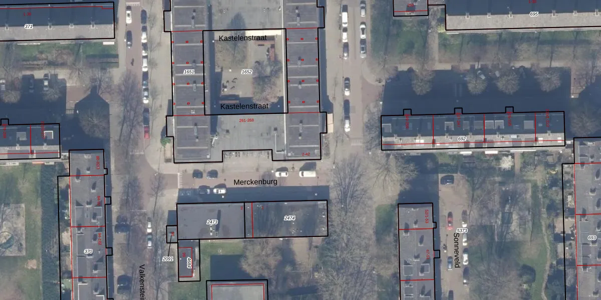 Het perceel waarop Merckenburg 8 staat heeft een oppervlakte van 2072 m². Dit is een zeer groot perceel. De perceeloppervlakte wordt geregistreerd door het Kadaster. Gedetailleerde informatie over de maten van dit perceel kunt u vinden in het rapport Kadastrale kaart met maatvoering van Merckenburg 8.