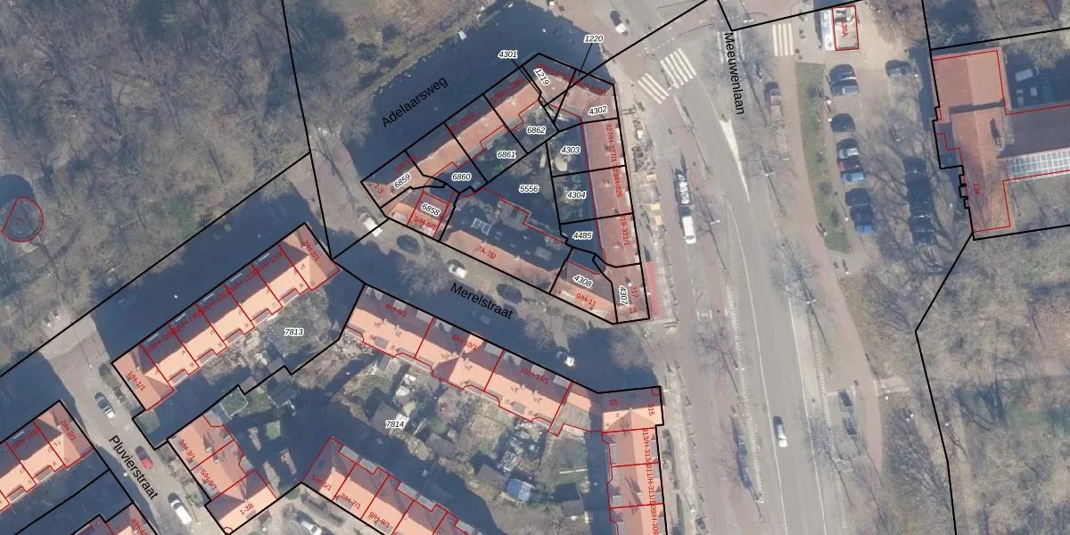 Het perceel waarop Merelstraat 7-D staat heeft een oppervlakte van 381 m². Dit is een groot perceel. De perceeloppervlakte wordt geregistreerd door het Kadaster. Gedetailleerde informatie over de maten van dit perceel kunt u vinden in het rapport Kadastrale kaart met maatvoering van Merelstraat 7-D.