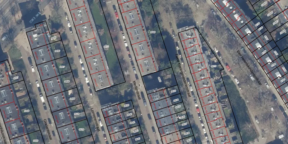 Het perceel waarop Merlijnstraat 10-3 staat heeft een oppervlakte van 1290 m². Dit is een zeer groot perceel. De perceeloppervlakte wordt geregistreerd door het Kadaster. Gedetailleerde informatie over de maten van dit perceel kunt u vinden in het rapport Kadastrale kaart met maatvoering van Merlijnstraat 10-3.