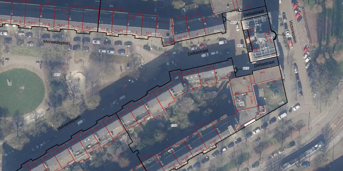 Het perceel waarop Merwedeplein 1 staat heeft een oppervlakte van 3845 m². Dit is een zeer groot perceel. De perceeloppervlakte wordt geregistreerd door het Kadaster. Gedetailleerde informatie over de maten van dit perceel kunt u vinden in het rapport Kadastrale kaart met maatvoering van Merwedeplein 1.