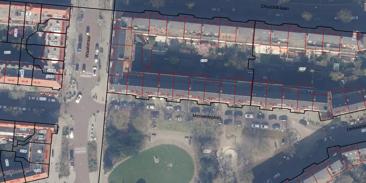 Merwedeplein 36 is gelegen op kadastraal perceel ASD18V6756. Deze kadastrale aanduiding is uniek en wordt gebruikt door het Kadaster om eigendomsrechten en andere zakelijke rechten vast te leggen. Het perceel maakt onderdeel uit van de kadastrale gemeente Amsterdam.