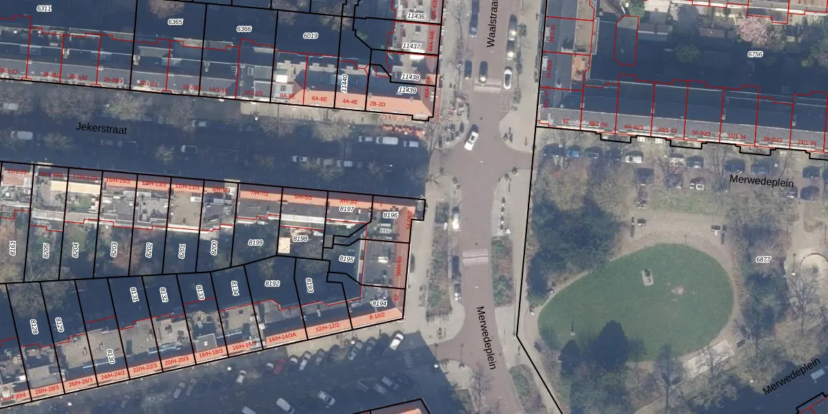 Merwedeplein 54 is gelegen op kadastraal perceel ASD18V8196. Deze kadastrale aanduiding is uniek en wordt gebruikt door het Kadaster om eigendomsrechten en andere zakelijke rechten vast te leggen. Het perceel maakt onderdeel uit van de kadastrale gemeente Amsterdam.