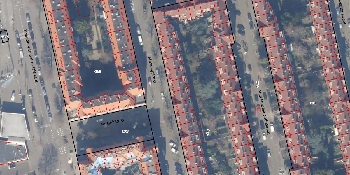 Mesdagstraat 23-H is gelegen op kadastraal perceel ASD18V5449. Deze kadastrale aanduiding is uniek en wordt gebruikt door het Kadaster om eigendomsrechten en andere zakelijke rechten vast te leggen. Het perceel maakt onderdeel uit van de kadastrale gemeente Amsterdam.