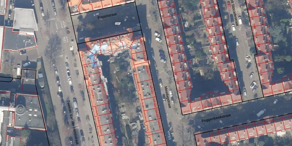 Het perceel waarop Mesdagstraat 44-2 staat heeft een oppervlakte van 5085 m². Dit is een zeer groot perceel. De perceeloppervlakte wordt geregistreerd door het Kadaster. Gedetailleerde informatie over de maten van dit perceel kunt u vinden in het rapport Kadastrale kaart met maatvoering van Mesdagstraat 44-2.