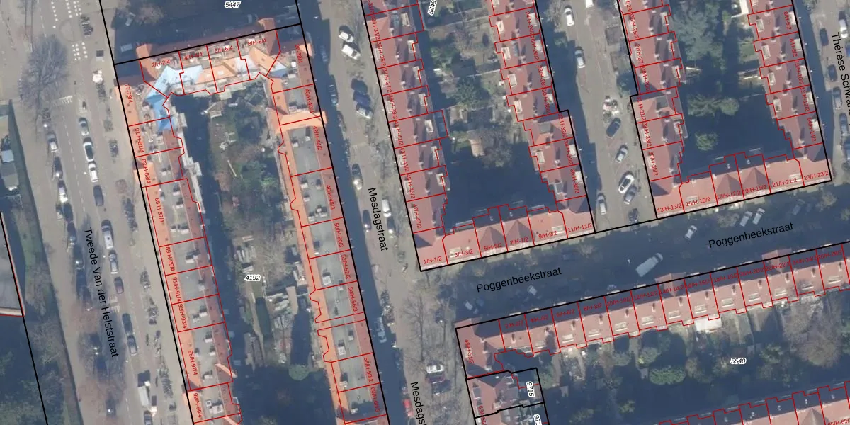 Het perceel waarop Mesdagstraat 47-2 staat heeft een oppervlakte van 5548 m². Dit is een zeer groot perceel. De perceeloppervlakte wordt geregistreerd door het Kadaster. Gedetailleerde informatie over de maten van dit perceel kunt u vinden in het rapport Kadastrale kaart met maatvoering van Mesdagstraat 47-2.
