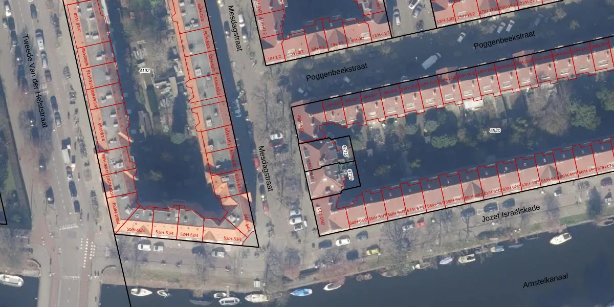 Mesdagstraat 53-A is gelegen op kadastraal perceel ASD18V9715. Deze kadastrale aanduiding is uniek en wordt gebruikt door het Kadaster om eigendomsrechten en andere zakelijke rechten vast te leggen. Het perceel maakt onderdeel uit van de kadastrale gemeente Amsterdam.