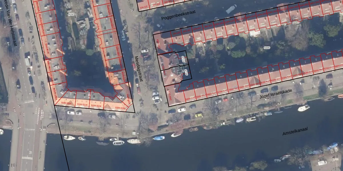 Het adres is gelegen op perceel 5540 in de sectie V en de kadastrale gemeente Amsterdam. De kadastrale aanduiding is aldus ASD18-V-5540. De oppervlakte van het perceel is 5245 m². Dat is groter dan gemiddeld in Amsterdam, waar de gemiddelde perceeloppervlakte op 559,23 m² ligt. Het grootste perceel in de kadastrale gemeente is 12,5 ha. Het kleinste perceel heeft een oppervlakte van 0 m². Er zijn 131 adressen aanwezig op het perceel. In de Basisregistratie Kadaster (BRK) werden de grenzen van het perceel geregistreerd op 09-08-2006.