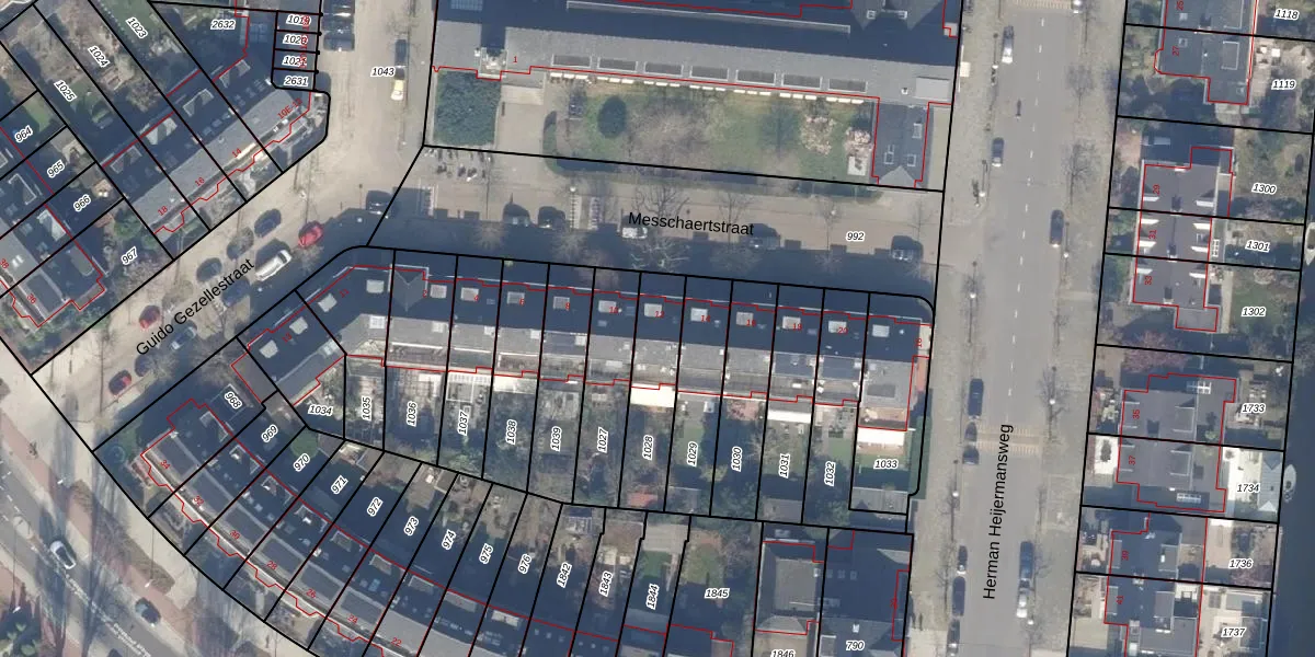Het perceel waarop Messchaertstraat 12 staat heeft een oppervlakte van 253 m². Dit is een middelgroot perceel. De perceeloppervlakte wordt geregistreerd door het Kadaster. Gedetailleerde informatie over de maten van dit perceel kunt u vinden in het rapport Kadastrale kaart met maatvoering van Messchaertstraat 12.