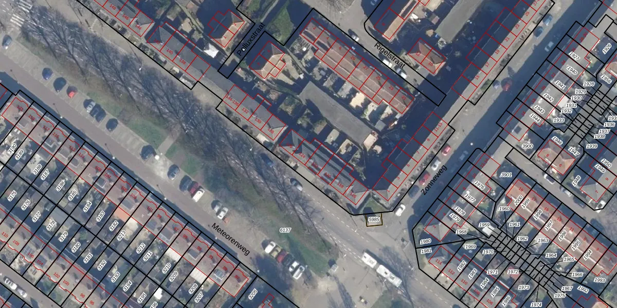 Het perceel waarop Meteorenweg 124 staat heeft een oppervlakte van 1,4 ha. Dit is een zeer groot perceel. De perceeloppervlakte wordt geregistreerd door het Kadaster. Gedetailleerde informatie over de maten van dit perceel kunt u vinden in het rapport Kadastrale kaart met maatvoering van Meteorenweg 124.