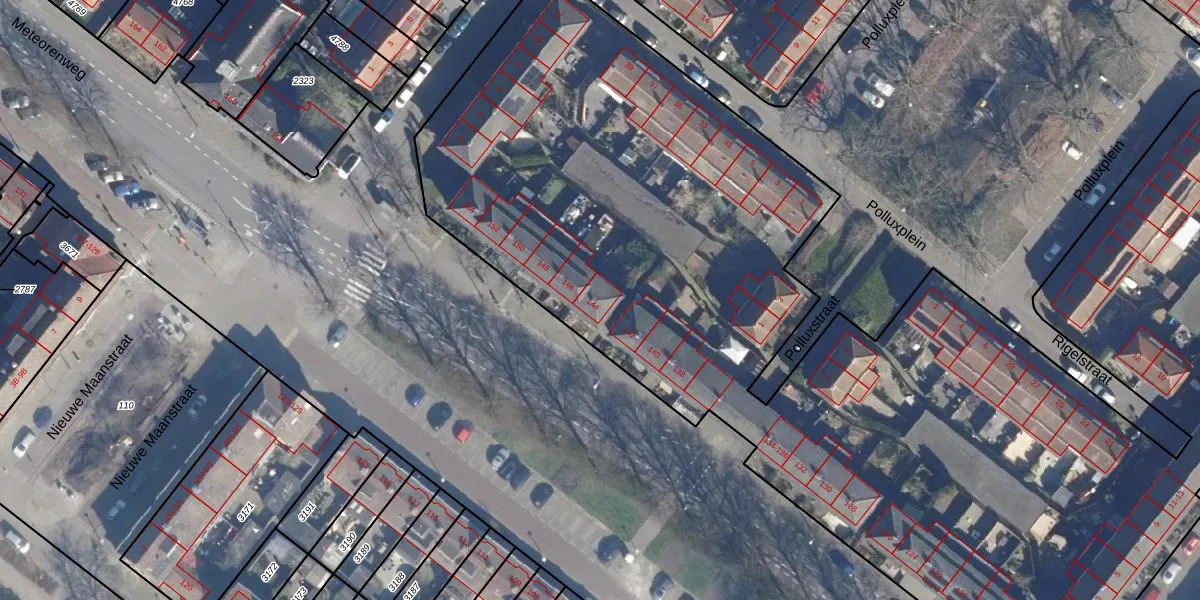 Het perceel waarop Meteorenweg 144 staat heeft een oppervlakte van 1,4 ha. Dit is een zeer groot perceel. De perceeloppervlakte wordt geregistreerd door het Kadaster. Gedetailleerde informatie over de maten van dit perceel kunt u vinden in het rapport Kadastrale kaart met maatvoering van Meteorenweg 144.