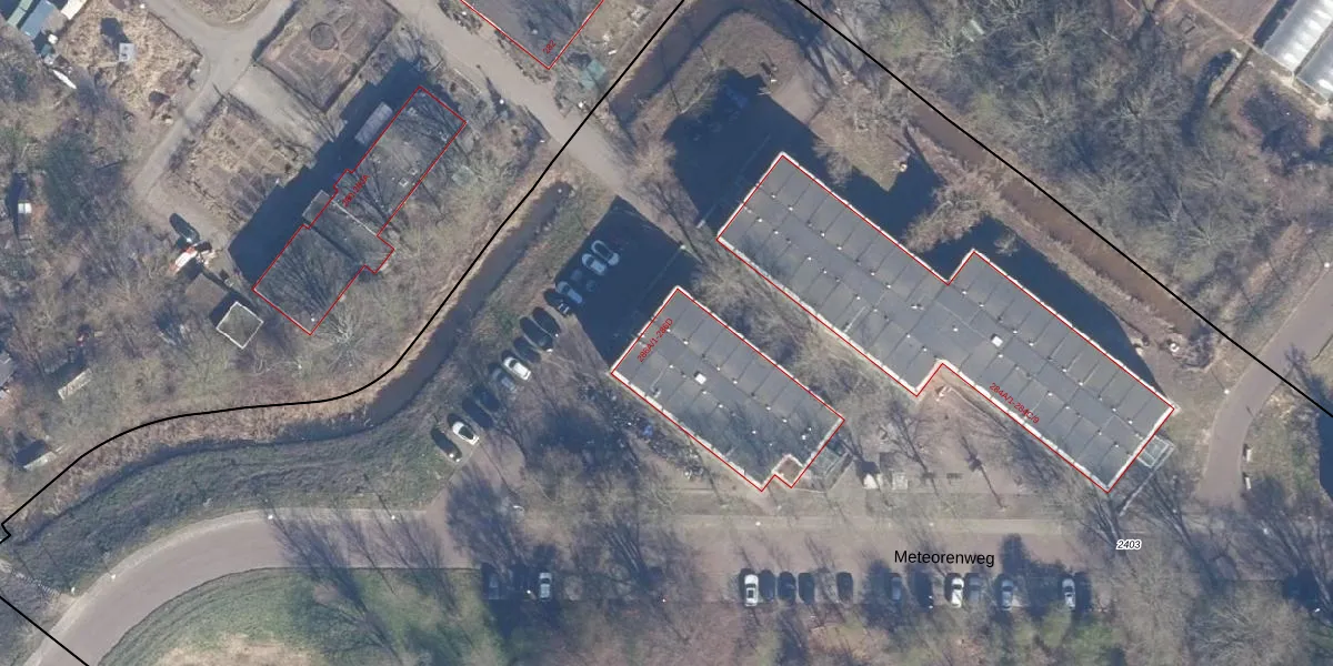 Het perceel waarop Meteorenweg 286-C-1 staat heeft een oppervlakte van 3,5 ha. Dit is een zeer groot perceel. De perceeloppervlakte wordt geregistreerd door het Kadaster. Gedetailleerde informatie over de maten van dit perceel kunt u vinden in het rapport Kadastrale kaart met maatvoering van Meteorenweg 286-C-1.
