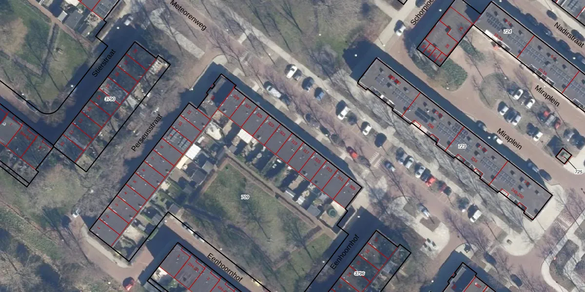 Het perceel waarop Meteorenweg 319 staat heeft een oppervlakte van 3603 m². Dit is een zeer groot perceel. De perceeloppervlakte wordt geregistreerd door het Kadaster. Gedetailleerde informatie over de maten van dit perceel kunt u vinden in het rapport Kadastrale kaart met maatvoering van Meteorenweg 319.