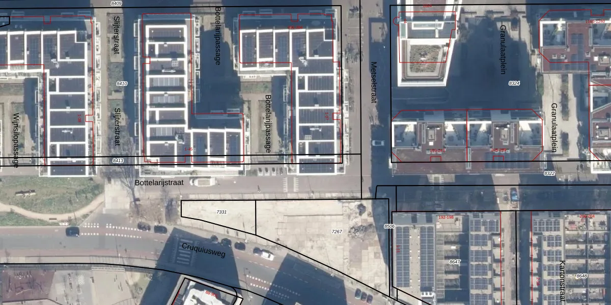 Het adres is gelegen op perceel 8410 in de sectie A en de kadastrale gemeente Amsterdam. De kadastrale aanduiding is aldus ASD02-A-8410. De gemiddelde perceeloppervlakte in de kadastrale gemeente Amsterdam is 2767,13 m². Dit perceel is met zijn 6995 m² dus groter dan gemiddeld. Het grootste perceel in de kadastrale gemeente is 14,3 ha. Het kleinste perceel heeft een oppervlakte van 0 m². Op het perceel liggen in totaal 167 adressen. De laatste wijziging in het de Basisregistratie Kadaster (BRK) was op 30-08-2022.