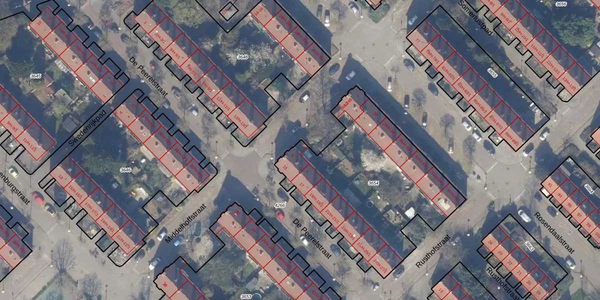 Het perceel waarop Middelhoffstraat 8 staat heeft een oppervlakte van 1933 m². Dit is een zeer groot perceel. De perceeloppervlakte wordt geregistreerd door het Kadaster. Gedetailleerde informatie over de maten van dit perceel kunt u vinden in het rapport Kadastrale kaart met maatvoering van Middelhoffstraat 8.