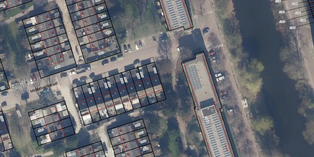 Het perceel waarop Middelveldstraat 1 staat heeft een oppervlakte van 148 m². Dit is een middelgroot perceel. De perceeloppervlakte wordt geregistreerd door het Kadaster. Gedetailleerde informatie over de maten van dit perceel kunt u vinden in het rapport Kadastrale kaart met maatvoering van Middelveldstraat 1.