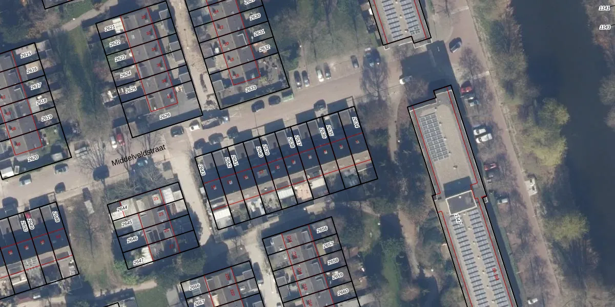 Middelveldstraat 7 is gelegen op kadastraal perceel STN02G2637. Deze kadastrale aanduiding is uniek en wordt gebruikt door het Kadaster om eigendomsrechten en andere zakelijke rechten vast te leggen. Het perceel maakt onderdeel uit van de kadastrale gemeente Sloten Noord-Holland.
