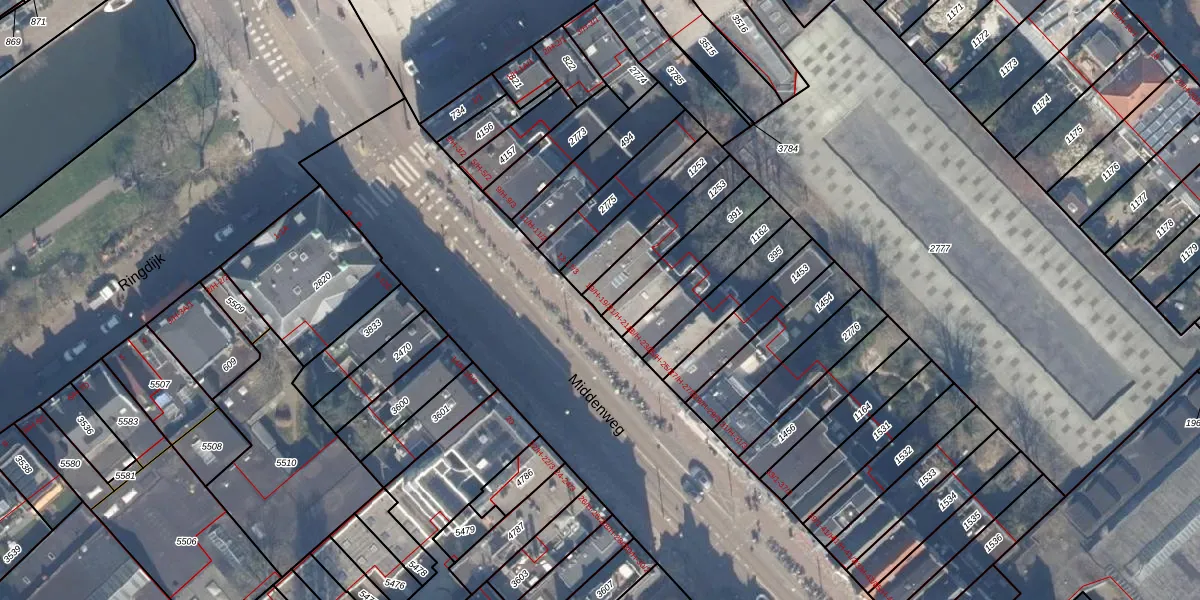 Het perceel waarop Middenweg 19-1 staat heeft een oppervlakte van 159 m². Dit is een middelgroot perceel. De perceeloppervlakte wordt geregistreerd door het Kadaster. Gedetailleerde informatie over de maten van dit perceel kunt u vinden in het rapport Kadastrale kaart met maatvoering van Middenweg 19-1.