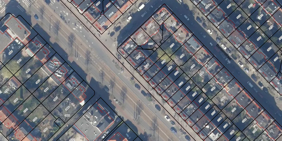 Gebruik de zoekbalk of klik op een perceel voor informatie over de adressen binnen dit perceel.