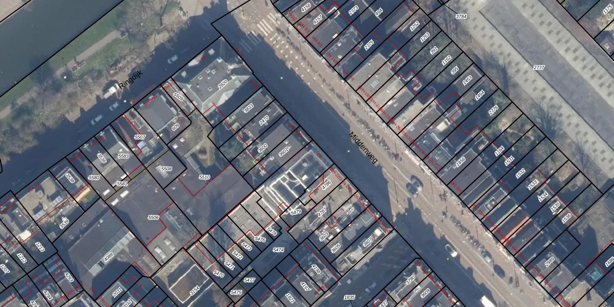 Middenweg 20-E is gelegen op kadastraal perceel WTG02A5474. Deze kadastrale aanduiding is uniek en wordt gebruikt door het Kadaster om eigendomsrechten en andere zakelijke rechten vast te leggen. Het perceel maakt onderdeel uit van de kadastrale gemeente Watergraafsmeer.
