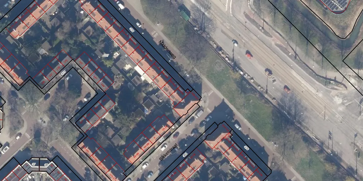 Het perceel waarop Middenweg 504 staat heeft een oppervlakte van 5685 m². Dit is een zeer groot perceel. De perceeloppervlakte wordt geregistreerd door het Kadaster. Gedetailleerde informatie over de maten van dit perceel kunt u vinden in het rapport Kadastrale kaart met maatvoering van Middenweg 504.