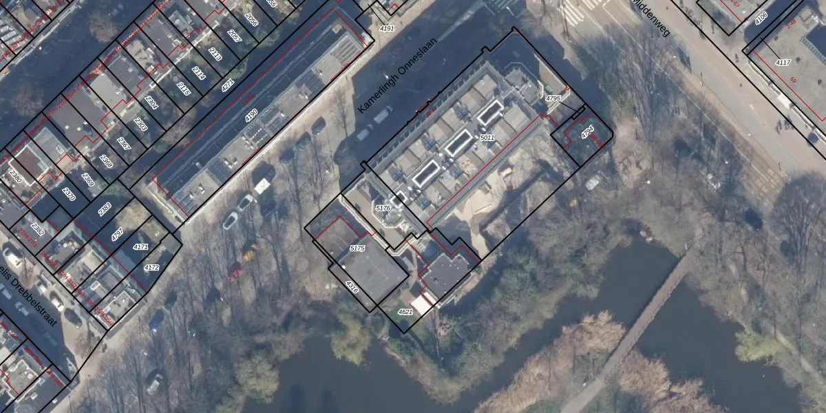 Het perceel waarop Middenweg 56-K staat heeft een oppervlakte van 1595 m². Dit is een zeer groot perceel. De perceeloppervlakte wordt geregistreerd door het Kadaster. Gedetailleerde informatie over de maten van dit perceel kunt u vinden in het rapport Kadastrale kaart met maatvoering van Middenweg 56-K.