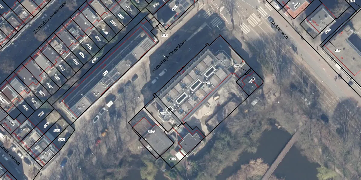 Het perceel waarop Middenweg 58-H staat heeft een oppervlakte van 1595 m². Dit is een zeer groot perceel. De perceeloppervlakte wordt geregistreerd door het Kadaster. Gedetailleerde informatie over de maten van dit perceel kunt u vinden in het rapport Kadastrale kaart met maatvoering van Middenweg 58-H.