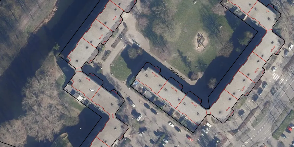 Midscheeps 115 is gelegen op kadastraal perceel ASD36AQ2236. Deze kadastrale aanduiding is uniek en wordt gebruikt door het Kadaster om eigendomsrechten en andere zakelijke rechten vast te leggen. Het perceel maakt onderdeel uit van de kadastrale gemeente Amsterdam.