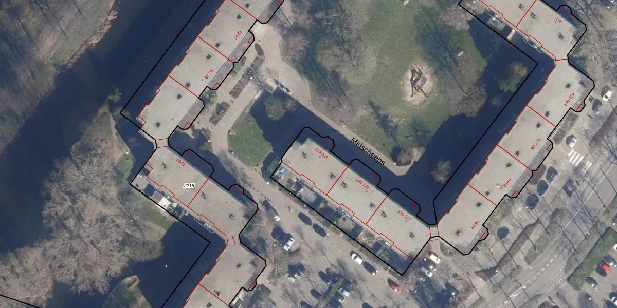 Midscheeps 116 is gelegen op kadastraal perceel ASD36AQ2236. Deze kadastrale aanduiding is uniek en wordt gebruikt door het Kadaster om eigendomsrechten en andere zakelijke rechten vast te leggen. Het perceel maakt onderdeel uit van de kadastrale gemeente Amsterdam.