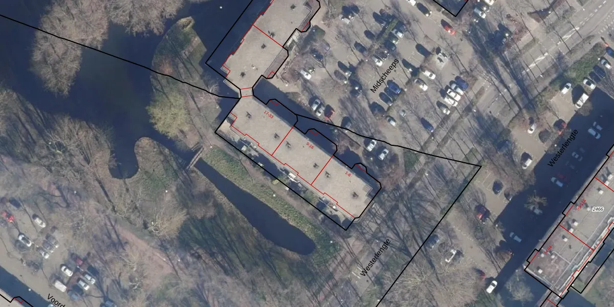 Midscheeps 12 is gelegen op kadastraal perceel ASD36AQ2215. Deze kadastrale aanduiding is uniek en wordt gebruikt door het Kadaster om eigendomsrechten en andere zakelijke rechten vast te leggen. Het perceel maakt onderdeel uit van de kadastrale gemeente Amsterdam.