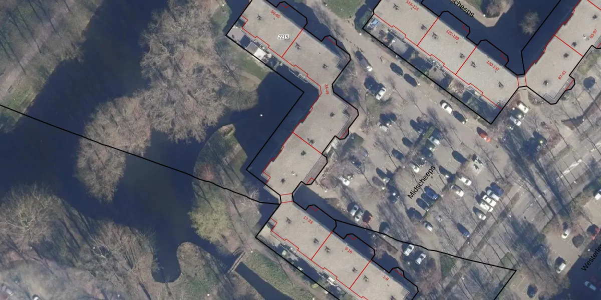 Midscheeps 32 is gelegen op kadastraal perceel ASD36AQ2215. Deze kadastrale aanduiding is uniek en wordt gebruikt door het Kadaster om eigendomsrechten en andere zakelijke rechten vast te leggen. Het perceel maakt onderdeel uit van de kadastrale gemeente Amsterdam.