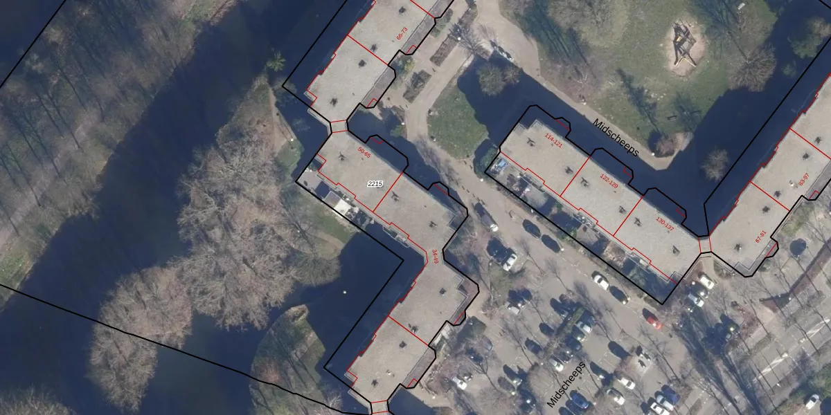 Midscheeps 46 is gelegen op kadastraal perceel ASD36AQ2215. Deze kadastrale aanduiding is uniek en wordt gebruikt door het Kadaster om eigendomsrechten en andere zakelijke rechten vast te leggen. Het perceel maakt onderdeel uit van de kadastrale gemeente Amsterdam.