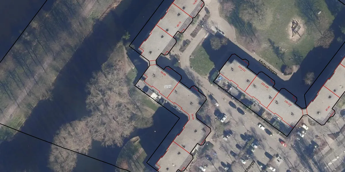 Midscheeps 50 is gelegen op kadastraal perceel ASD36AQ2215. Deze kadastrale aanduiding is uniek en wordt gebruikt door het Kadaster om eigendomsrechten en andere zakelijke rechten vast te leggen. Het perceel maakt onderdeel uit van de kadastrale gemeente Amsterdam.