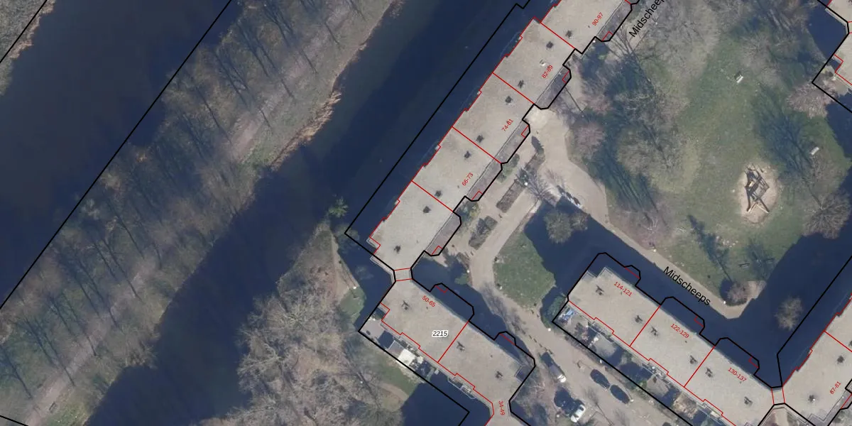 Midscheeps 63 is gelegen op kadastraal perceel ASD36AQ2215. Deze kadastrale aanduiding is uniek en wordt gebruikt door het Kadaster om eigendomsrechten en andere zakelijke rechten vast te leggen. Het perceel maakt onderdeel uit van de kadastrale gemeente Amsterdam.