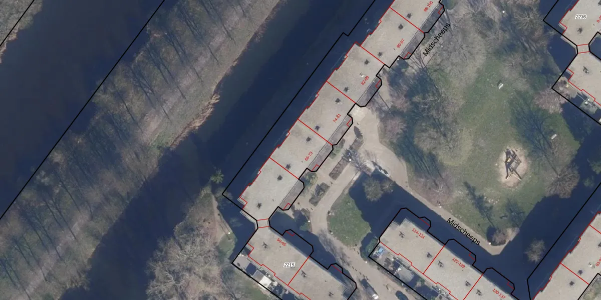 Midscheeps 69 is gelegen op kadastraal perceel ASD36AQ2215. Deze kadastrale aanduiding is uniek en wordt gebruikt door het Kadaster om eigendomsrechten en andere zakelijke rechten vast te leggen. Het perceel maakt onderdeel uit van de kadastrale gemeente Amsterdam.