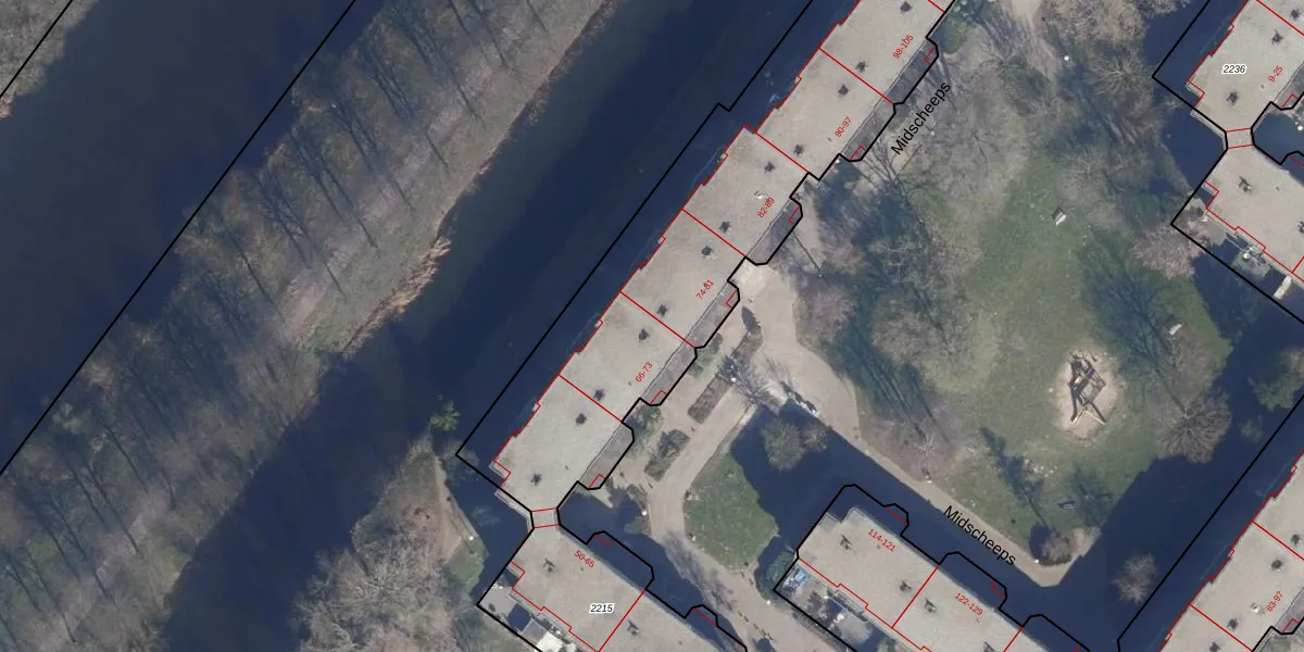 Midscheeps 72 is gelegen op kadastraal perceel ASD36AQ2215. Deze kadastrale aanduiding is uniek en wordt gebruikt door het Kadaster om eigendomsrechten en andere zakelijke rechten vast te leggen. Het perceel maakt onderdeel uit van de kadastrale gemeente Amsterdam.