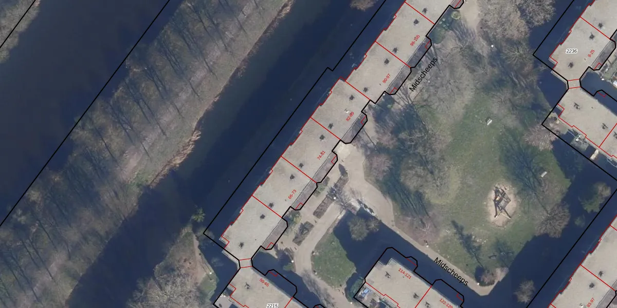 Midscheeps 76 is gelegen op kadastraal perceel ASD36AQ2215. Deze kadastrale aanduiding is uniek en wordt gebruikt door het Kadaster om eigendomsrechten en andere zakelijke rechten vast te leggen. Het perceel maakt onderdeel uit van de kadastrale gemeente Amsterdam.