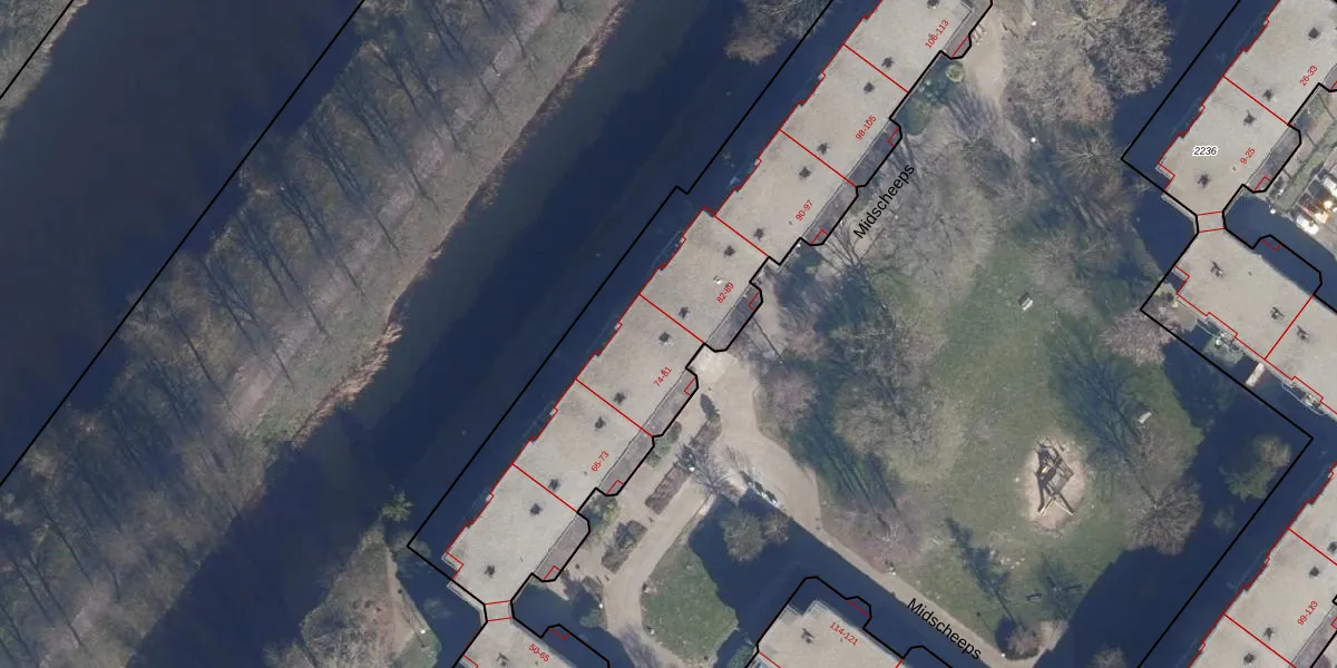 Midscheeps 80 is gelegen op kadastraal perceel ASD36AQ2215. Deze kadastrale aanduiding is uniek en wordt gebruikt door het Kadaster om eigendomsrechten en andere zakelijke rechten vast te leggen. Het perceel maakt onderdeel uit van de kadastrale gemeente Amsterdam.