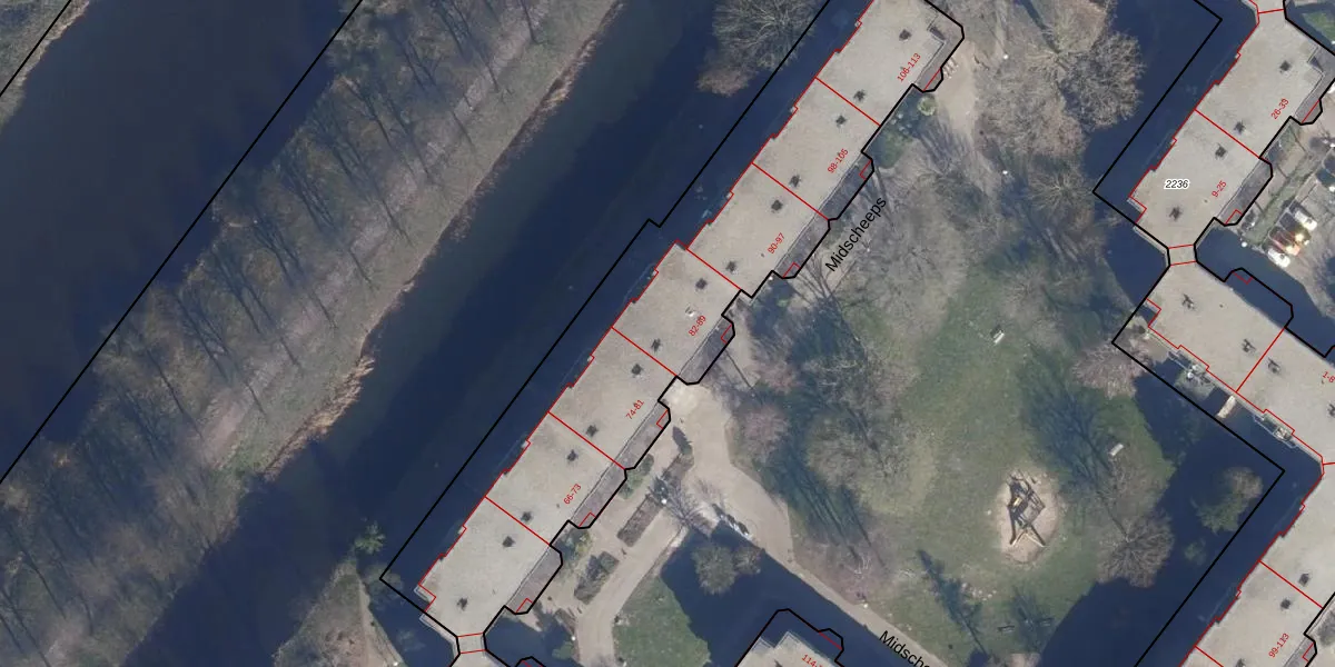 Midscheeps 83 is gelegen op kadastraal perceel ASD36AQ2215. Deze kadastrale aanduiding is uniek en wordt gebruikt door het Kadaster om eigendomsrechten en andere zakelijke rechten vast te leggen. Het perceel maakt onderdeel uit van de kadastrale gemeente Amsterdam.