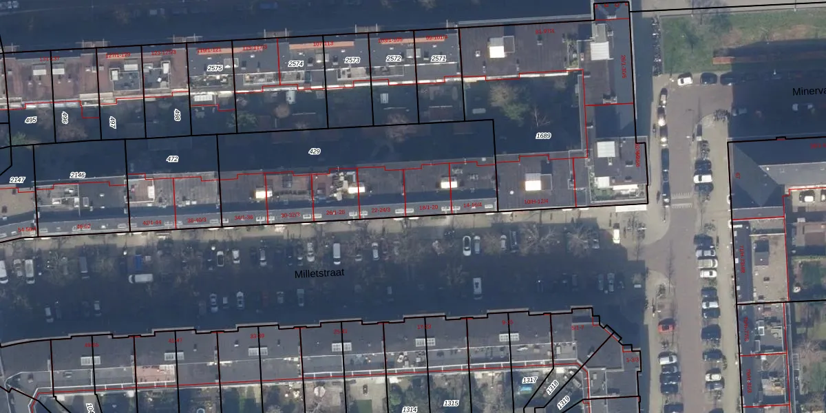 Milletstraat 20 is gelegen op kadastraal perceel ASD23AB429. Deze kadastrale aanduiding is uniek en wordt gebruikt door het Kadaster om eigendomsrechten en andere zakelijke rechten vast te leggen. Het perceel maakt onderdeel uit van de kadastrale gemeente Amsterdam.