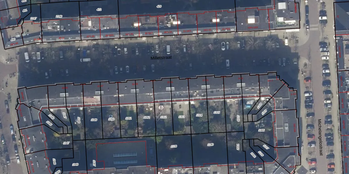 Het perceel waarop Milletstraat 27-2 staat heeft een oppervlakte van 322 m². Dit is een groot perceel. De perceeloppervlakte wordt geregistreerd door het Kadaster. Gedetailleerde informatie over de maten van dit perceel kunt u vinden in het rapport Kadastrale kaart met maatvoering van Milletstraat 27-2.