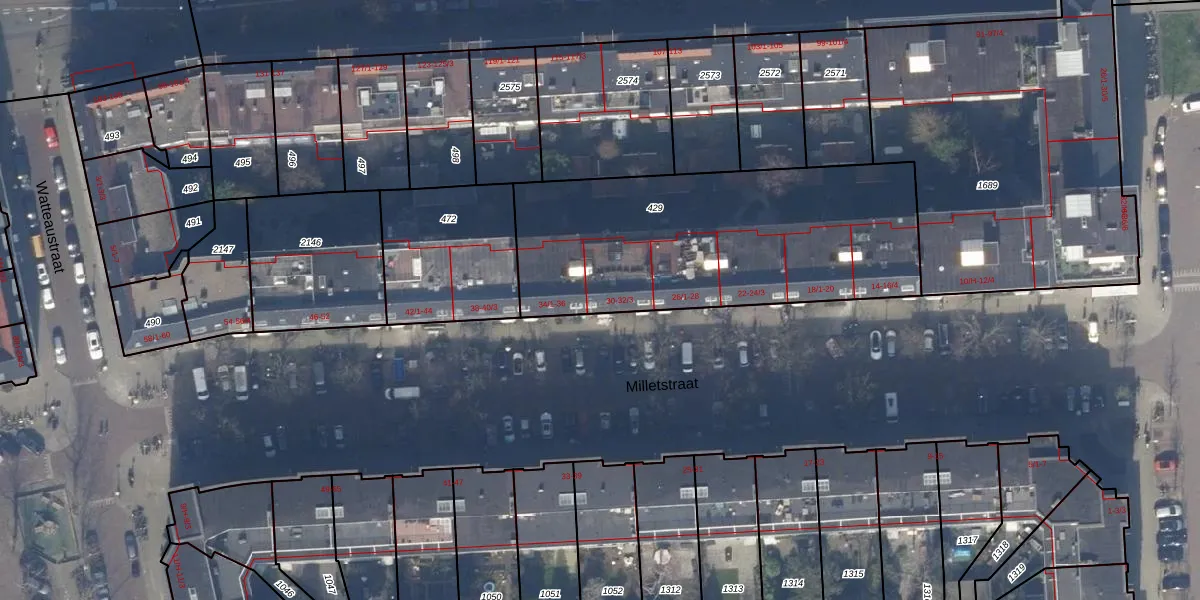 Milletstraat 32-2 is gelegen op kadastraal perceel ASD23AB429. Deze kadastrale aanduiding is uniek en wordt gebruikt door het Kadaster om eigendomsrechten en andere zakelijke rechten vast te leggen. Het perceel maakt onderdeel uit van de kadastrale gemeente Amsterdam.