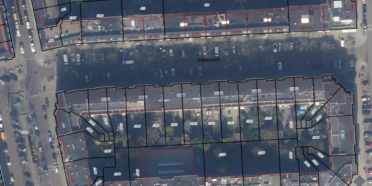 Het perceel waarop Milletstraat 35-1 staat heeft een oppervlakte van 324 m². Dit is een groot perceel. De perceeloppervlakte wordt geregistreerd door het Kadaster. Gedetailleerde informatie over de maten van dit perceel kunt u vinden in het rapport Kadastrale kaart met maatvoering van Milletstraat 35-1.