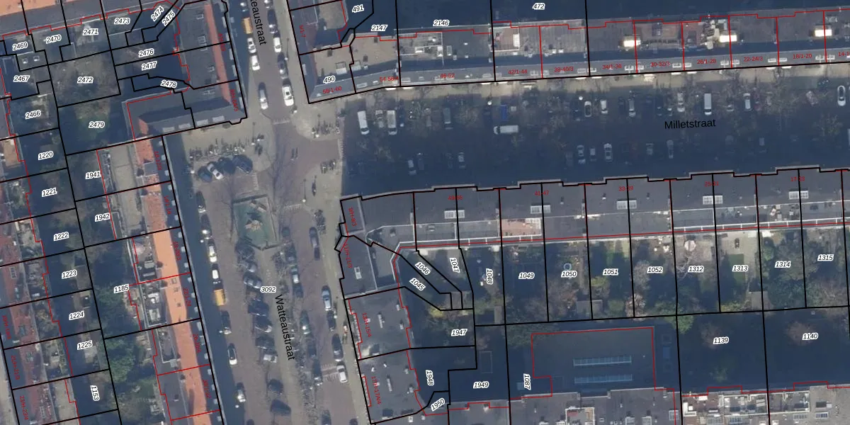 Milletstraat 55 is gelegen op kadastraal perceel ASD23AB1047. Deze kadastrale aanduiding is uniek en wordt gebruikt door het Kadaster om eigendomsrechten en andere zakelijke rechten vast te leggen. Het perceel maakt onderdeel uit van de kadastrale gemeente Amsterdam.