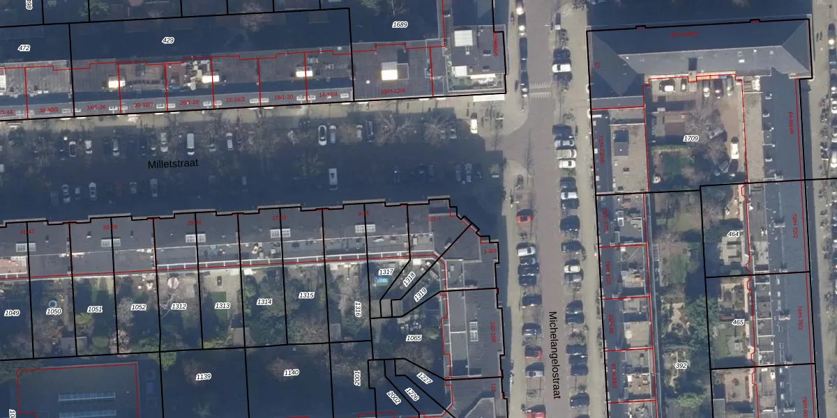 Milletstraat 7 is gelegen op kadastraal perceel ASD23AB1318. Deze kadastrale aanduiding is uniek en wordt gebruikt door het Kadaster om eigendomsrechten en andere zakelijke rechten vast te leggen. Het perceel maakt onderdeel uit van de kadastrale gemeente Amsterdam.