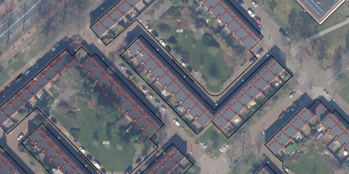 Het perceel waarop Minckelersstraat 13-A staat heeft een oppervlakte van 1900 m². Dit is een zeer groot perceel. De perceeloppervlakte wordt geregistreerd door het Kadaster. Gedetailleerde informatie over de maten van dit perceel kunt u vinden in het rapport Kadastrale kaart met maatvoering van Minckelersstraat 13-A.
