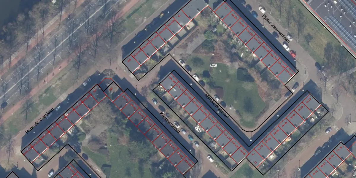 Het perceel waarop Minckelersstraat 17-B staat heeft een oppervlakte van 1900 m². Dit is een zeer groot perceel. De perceeloppervlakte wordt geregistreerd door het Kadaster. Gedetailleerde informatie over de maten van dit perceel kunt u vinden in het rapport Kadastrale kaart met maatvoering van Minckelersstraat 17-B.