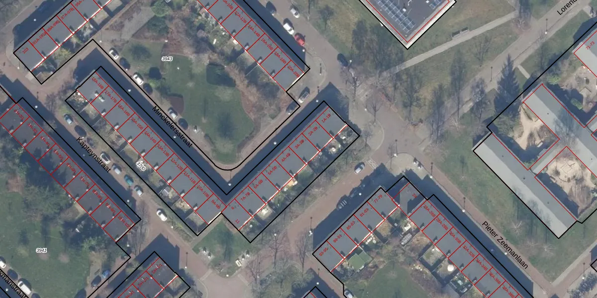 Het perceel waarop Minckelersstraat 3-B staat heeft een oppervlakte van 1900 m². Dit is een zeer groot perceel. De perceeloppervlakte wordt geregistreerd door het Kadaster. Gedetailleerde informatie over de maten van dit perceel kunt u vinden in het rapport Kadastrale kaart met maatvoering van Minckelersstraat 3-B.