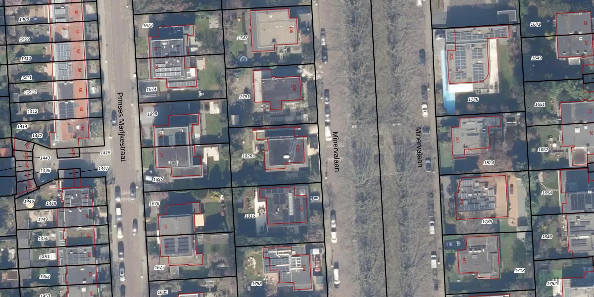 Het perceel waarop Minervalaan 110 staat heeft een oppervlakte van 601 m². Dit is een groot perceel. De perceeloppervlakte wordt geregistreerd door het Kadaster. Gedetailleerde informatie over de maten van dit perceel kunt u vinden in het rapport Kadastrale kaart met maatvoering van Minervalaan 110.