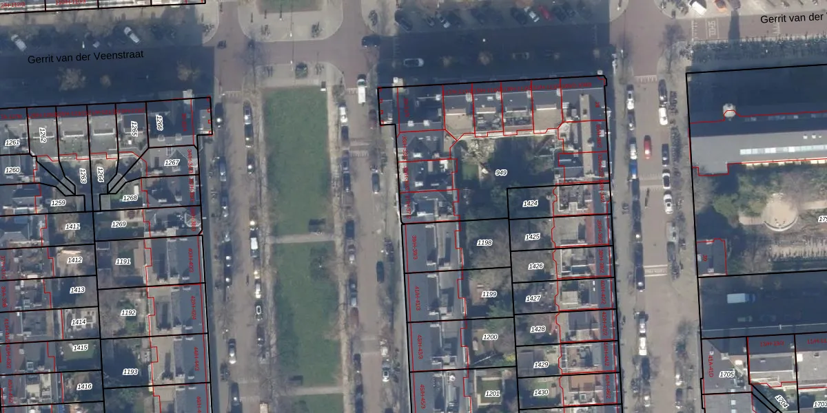 Het adres is gelegen op perceel 949 in de sectie Z en de kadastrale gemeente Amsterdam. De kadastrale aanduiding is aldus ASD22-Z-949. Het perceel is met 1548 m² relatief groot. Het gemiddelde ligt in de kadastrale gemeente Amsterdam op 654,25 m². De grootste perceeloppervlakte in de kadastrale gemeente is 18,1 ha. De kleinste oppervlakte bedraagt 0 m². Er zijn 28 adressen aanwezig op het perceel. De huidige grenzen van het perceel zijn digitaal in de Basisregistratie Kadaster (BRK) geregistreerd op 26-10-2006.
