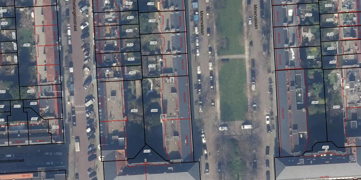 Minervalaan 54-3 is gelegen op kadastraal perceel ASD22Z1654. Deze kadastrale aanduiding is uniek en wordt gebruikt door het Kadaster om eigendomsrechten en andere zakelijke rechten vast te leggen. Het perceel maakt onderdeel uit van de kadastrale gemeente Amsterdam.